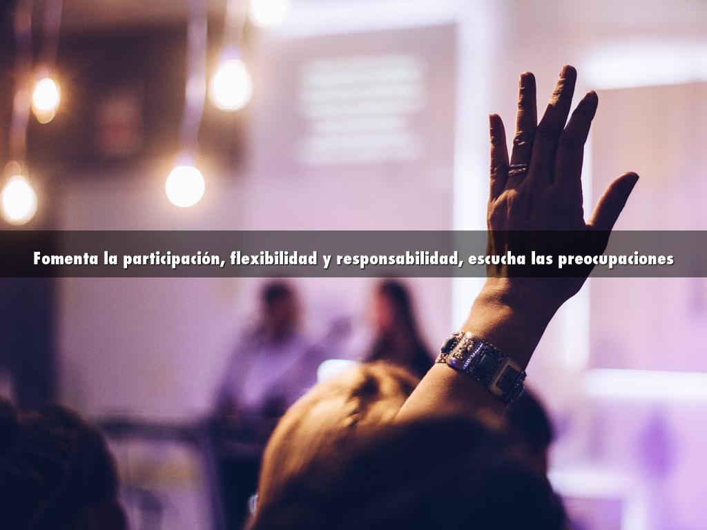 Fomenta la participación, flexibilidad y responsabilidad, escucha las preocupaciones