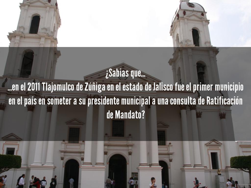 ¿Sabias que... ...en el 2011 Tlajomulco de Zúñiga en el estado de Jalisco fue el primer municipio en el país en someter a su presidente municipal a una consulta de Ratificación de Mandato?