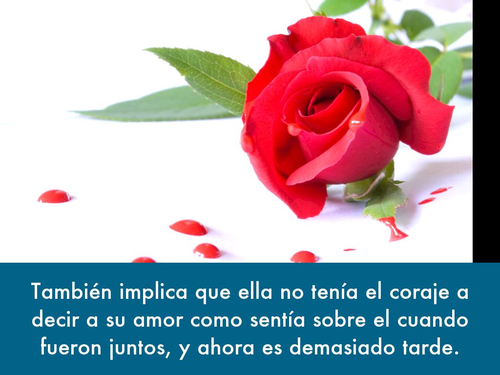 También implica que ella no tenía el coraje a decir a su amor como sentía sobre el cuando fueron juntos, y ahora es demasiado tarde.