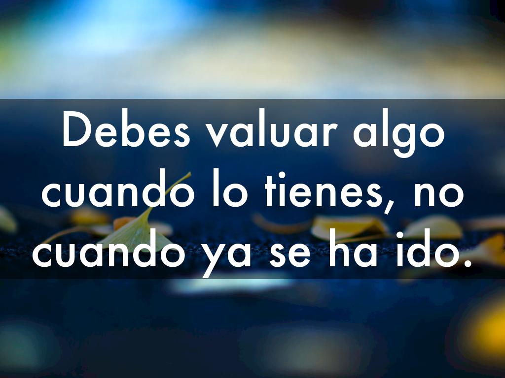 Debes valuar algo cuando lo tienes, no cuando ya se ha ido.