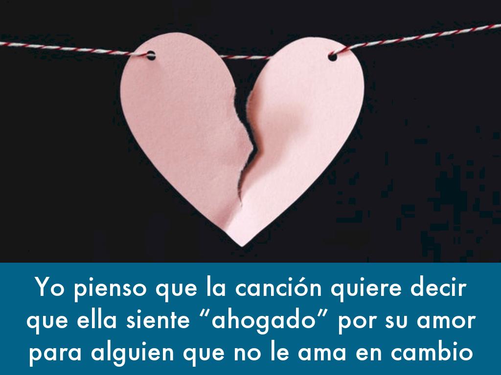 Yo pienso que la canción quiere decir que ella siente “ahogado” por su amor para alguien que no le ama en cambio
