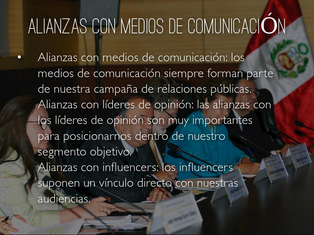 Alianzas con medios de comunicación: los medios de comunicación siempre forman parte de nuestra campaña de relaciones públicas.