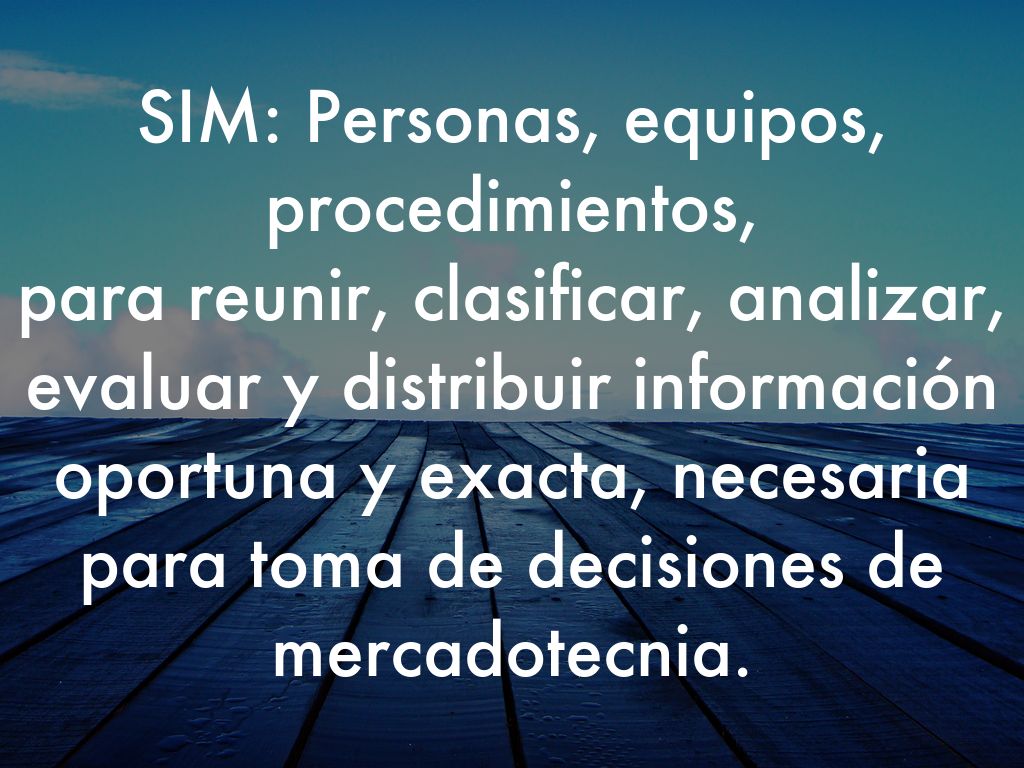 para reunir, clasificar, analizar, evaluar y distribuir información oportuna y exacta, necesaria para toma de decisiones de mercadotecnia.