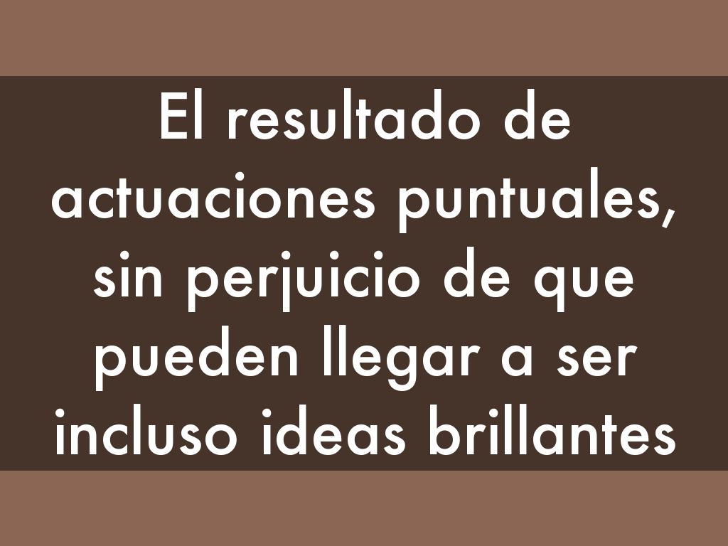 El resultado de actuaciones puntuales, sin perjuicio de que pueden llegar a ser incluso ideas brillantes