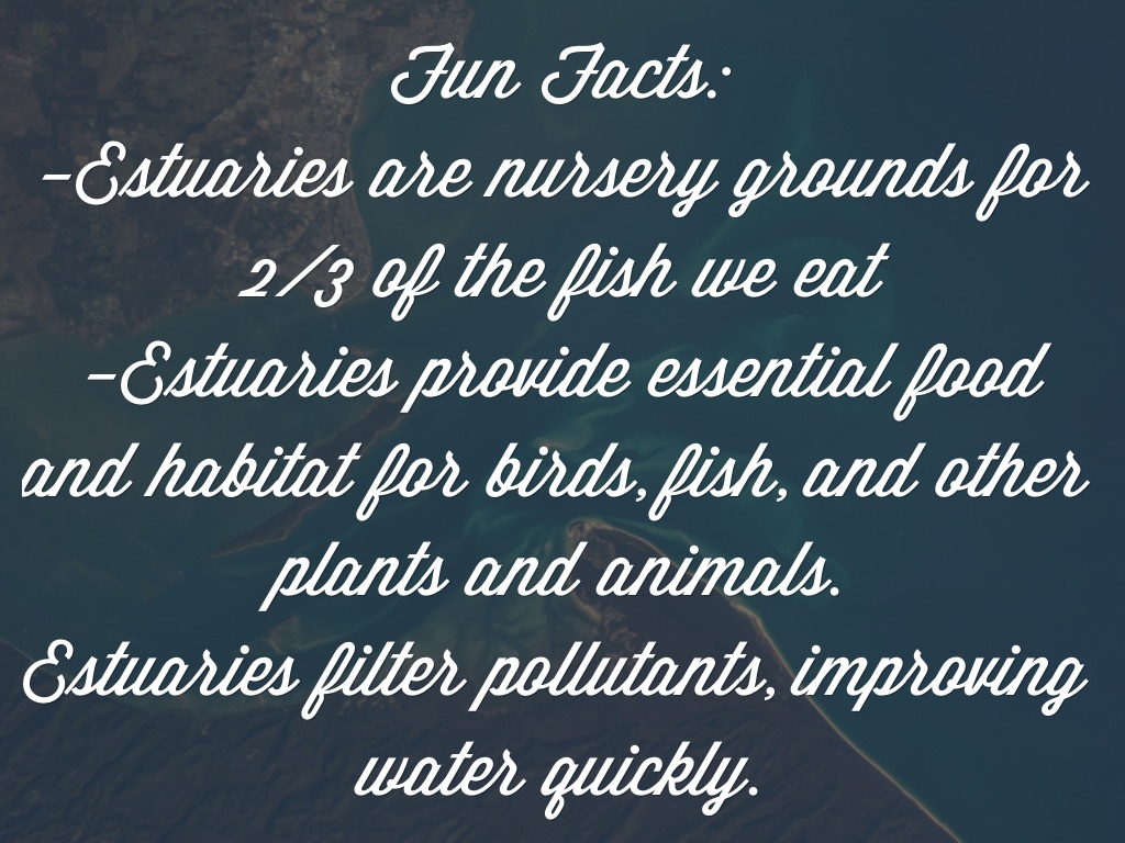 Fun Facts: -Estuaries are nursery grounds for 2/3 of the fish we eat -Estuaries provide essential food and habitat for birds, fish, and other plants and animals. Estuaries filter pollutants, improving water quickly.