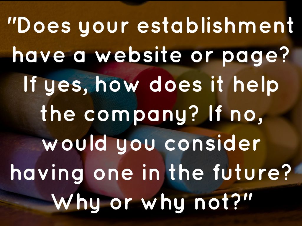 "Does your establishment have a website or page? If yes, how does it help the company? If no, would you consider having one in the future? Why or why not?"