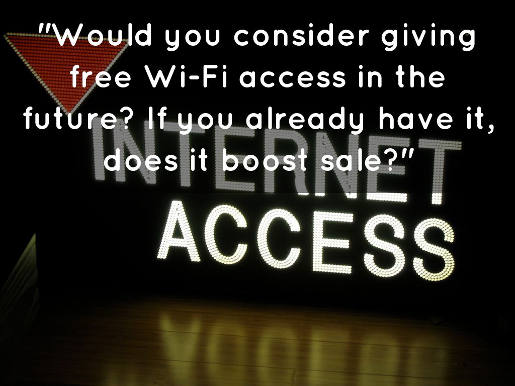 "Would you consider giving free Wi-Fi access in the future? If you already have it, does it boost sale?"