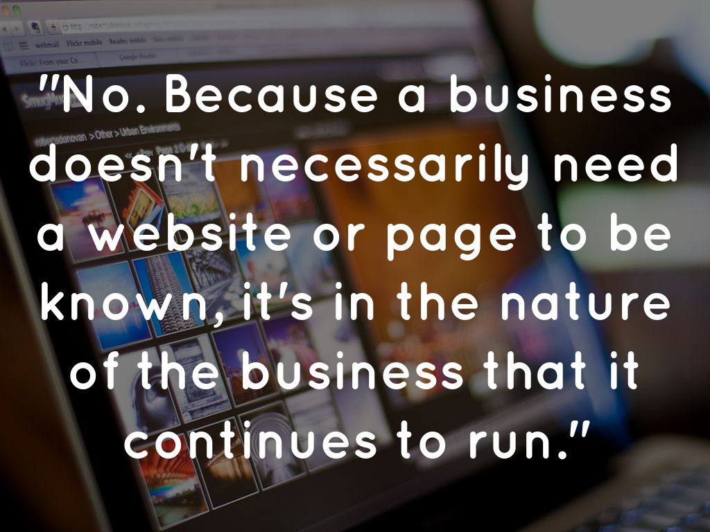 "No. Because a business doesn't necessarily need a website or page to be known, it's in the nature of the business that it continues to run."