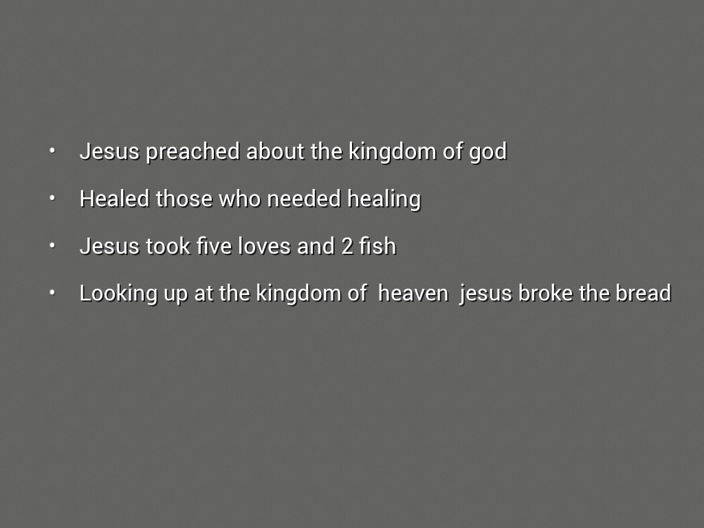 Jesus took five loves and 2 fish