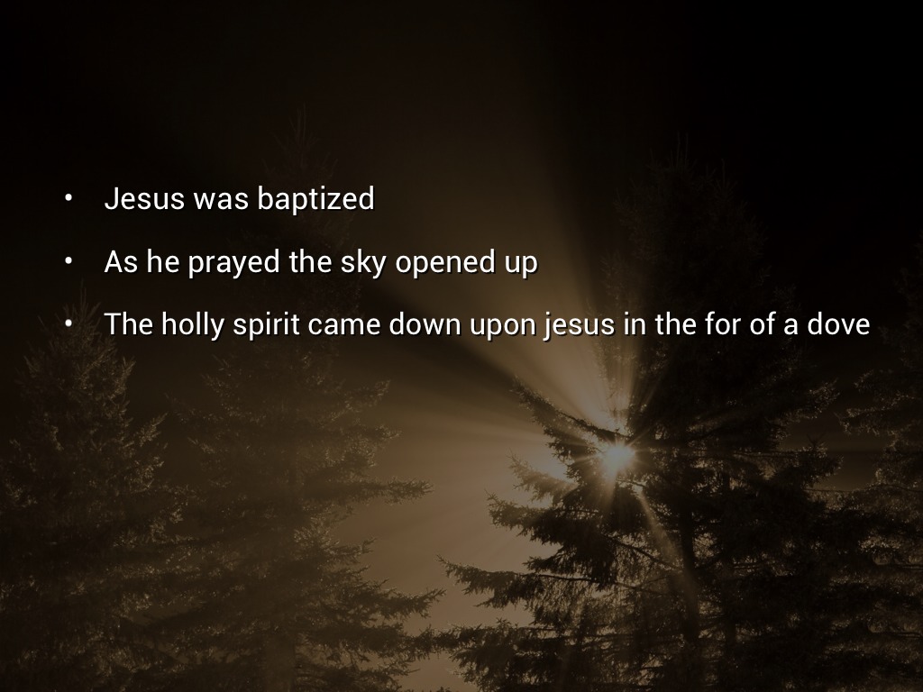 The holly spirit came down upon jesus in the for of a dove
