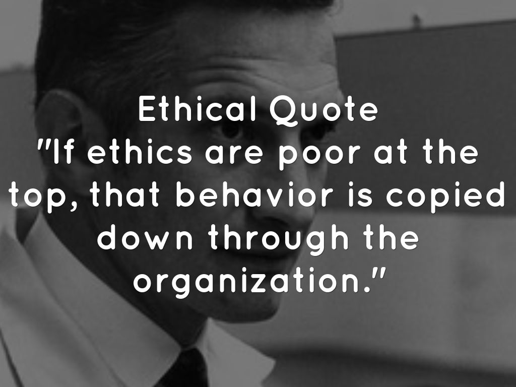 "If ethics are poor at the top, that behavior is copied down through the organization."