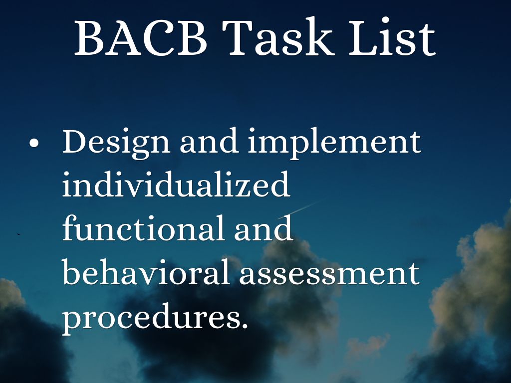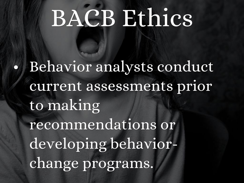 Behavior analysts conduct current assessments prior to making recommendations or developing behavior-change programs.
