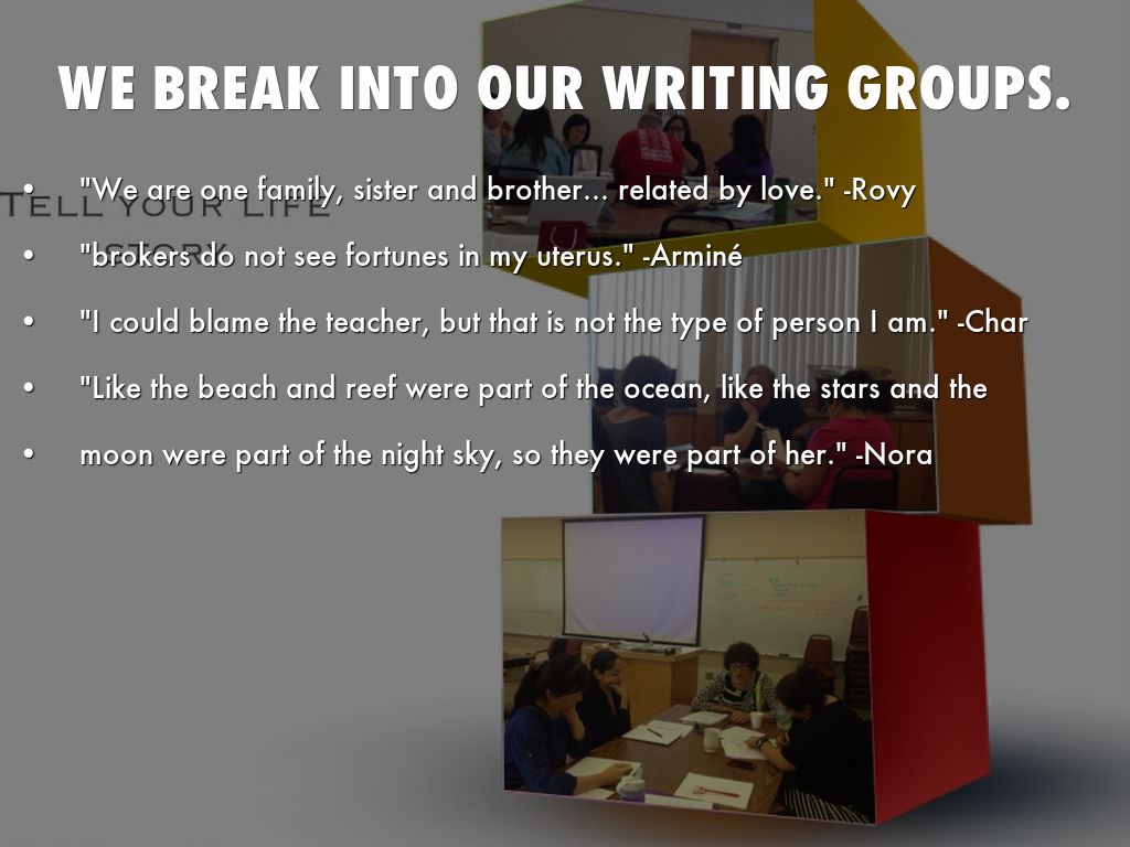 We break into our writing groups.