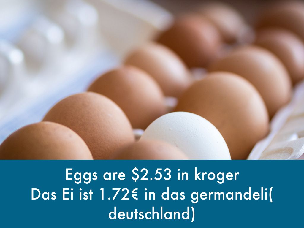 Das Ei ist 1.72€ in das germandeli( deutschland)