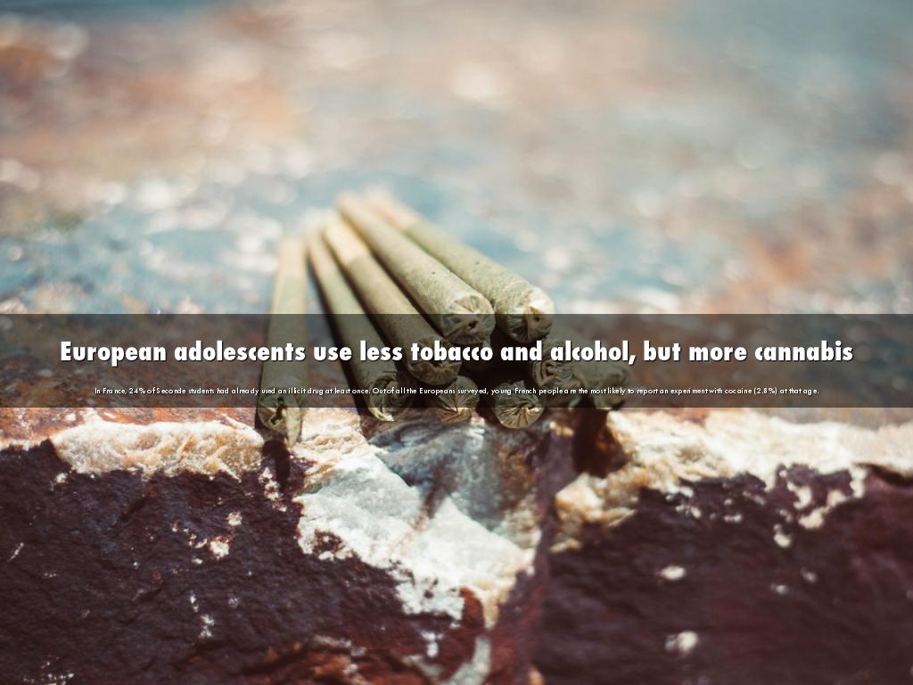 European adolescents are consuming less and less tobacco and alcohol, but are more attracted to cannabis, as "new addictive behaviors" develop online, warns a European study published Thursday.