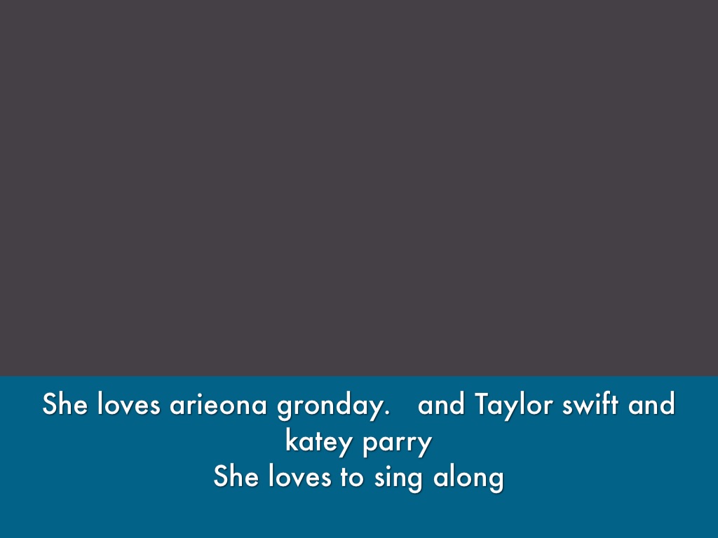 She loves arieona gronday. and Taylor swift and katey parry