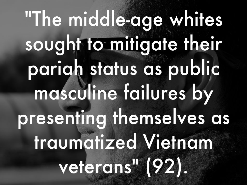 "The middle-age whites sought to mitigate their pariah status as public masculine failures by presenting themselves as traumatized Vietnam veterans" (92).