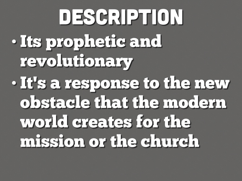 It's a response to the new obstacle that the modern world creates for the mission or the church