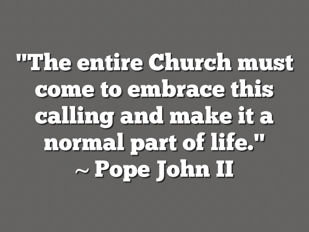 "The entire Church must come to embrace this calling and make it a normal part of life."