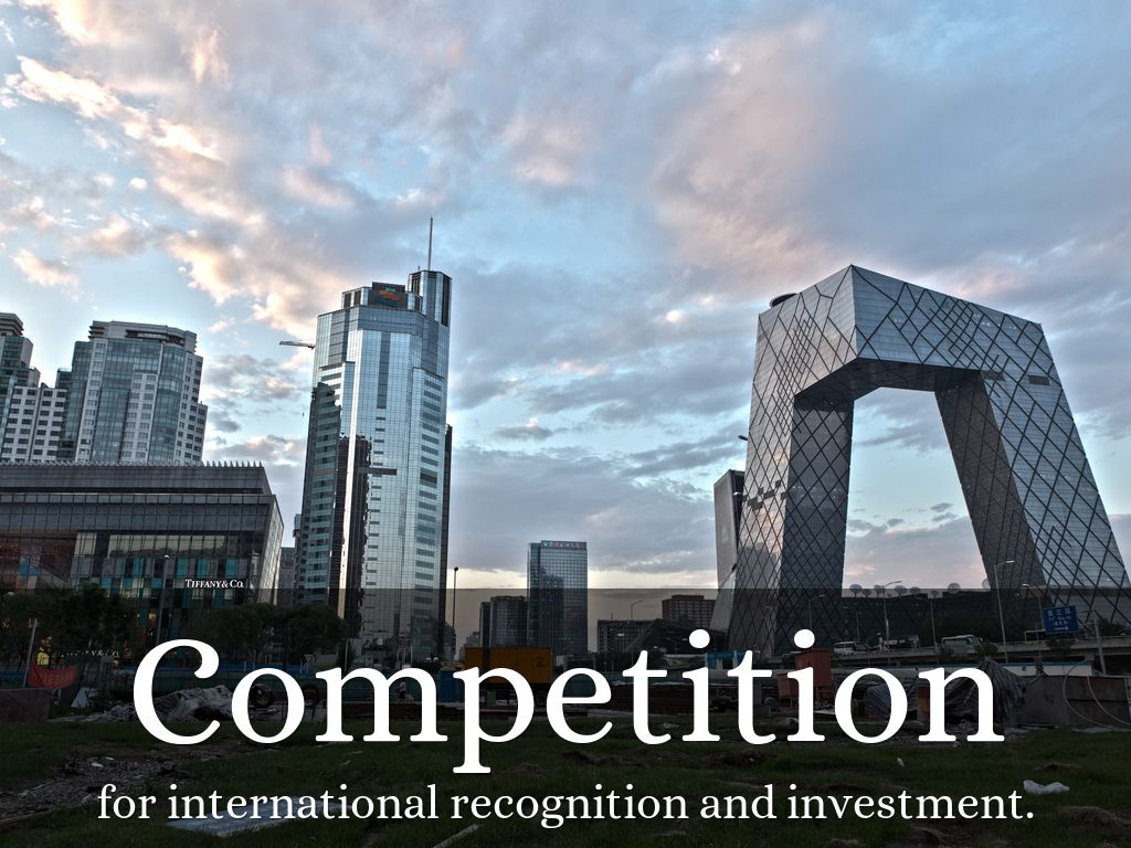Represent to the world China’s rise as a new global player push urban economic development in Beijing and create a new image of Beijing.