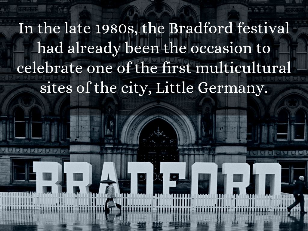 In the late 1980s, the Bradford festival had already been the occasion to celebrate one of the first multicultural sites of the city, Little Germany.