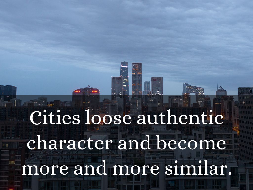 Cities loose authentic character and become more and more similar.