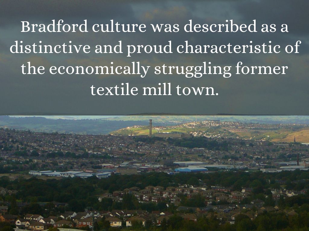Bradford culture was described as a distinctive and proud characteristic of the economically struggling former textile mill town.