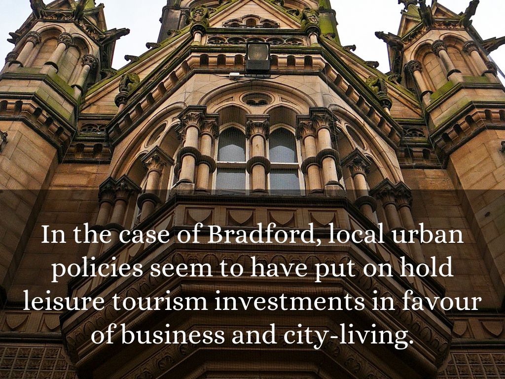 In the case of Bradford, local urban policies seem to have put on hold leisure tourism investments in favour of business and city-living.