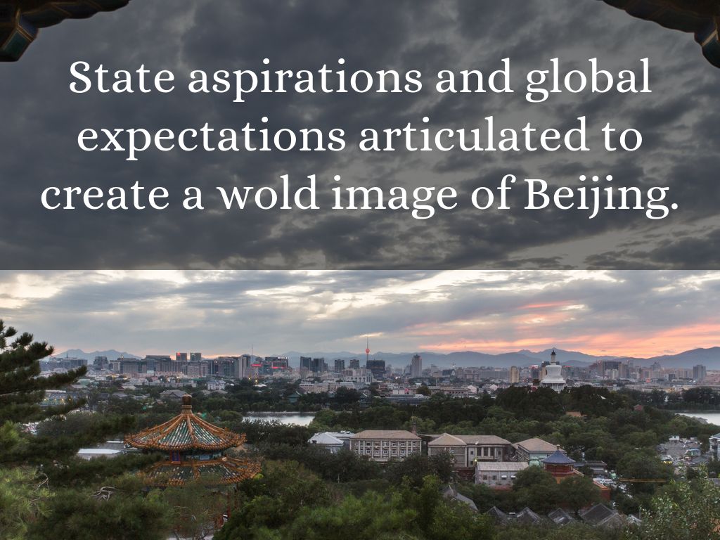 State aspirations and global expectations articulated to create a wold image of Beijing.