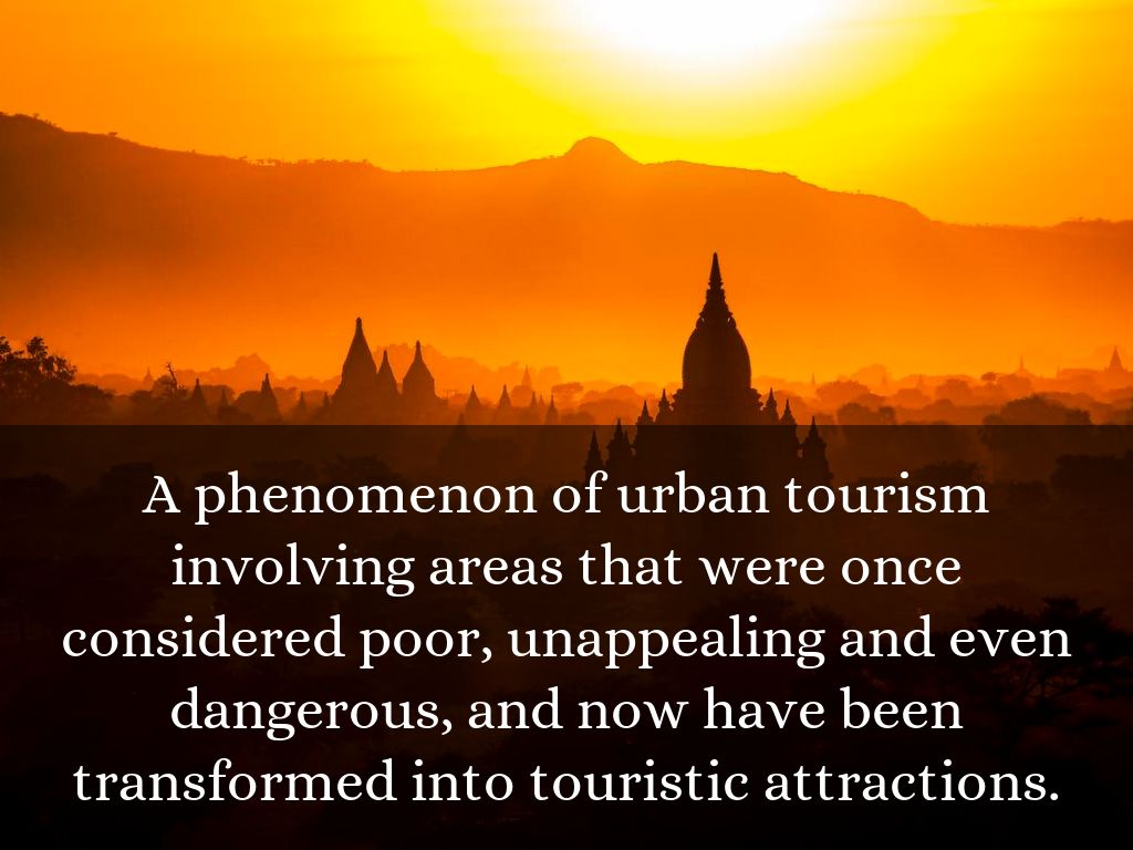 A phenomenon of urban tourism involving areas that were once considered poor, unappealing and even dangerous, and now have been transformed into touristic attractions.