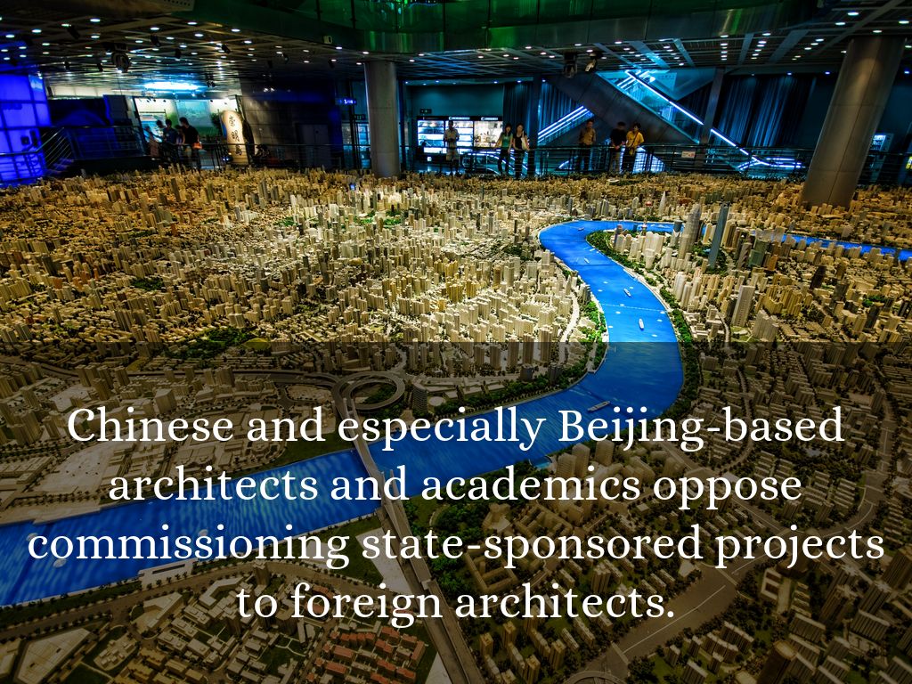 Chinese and especially Beijing-based architects and academics oppose commissioning state-sponsored projects to foreign architects.