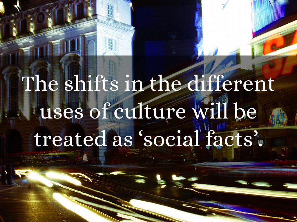 The shifts in the different uses of culture will be treated as ‘social facts’.
