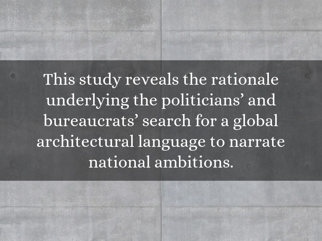 This study reveals the rationale underlying the politicians’ and bureaucrats’ search for a global architectural language to narrate national ambitions.