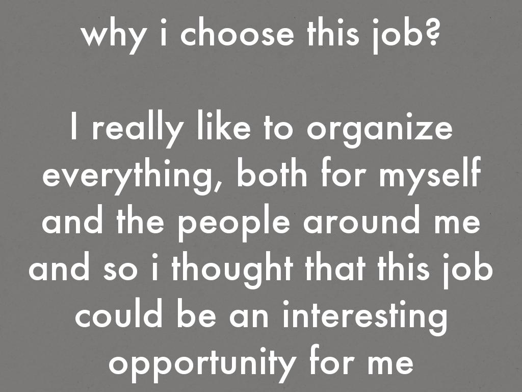I really like to organize everything, both for myself and the people around me and so i thought that this job could be an interesting opportunity for me