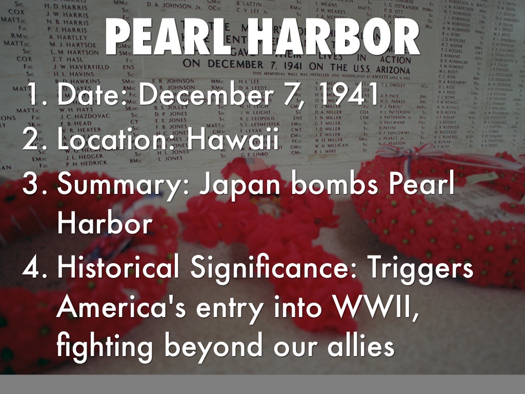 Historical Significance: Triggers America's entry into WWII, fighting beyond our allies