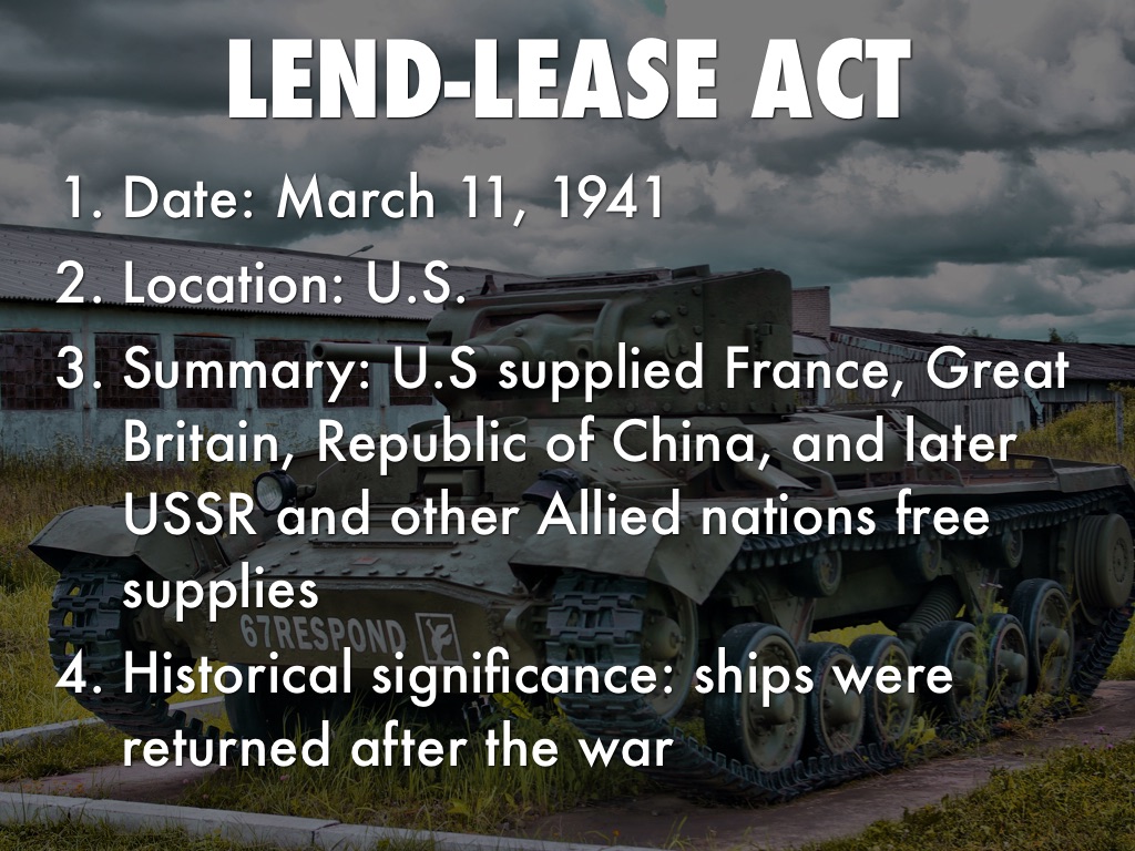 Summary: U.S supplied France, Great Britain, Republic of China, and later USSR and other Allied nations free supplies