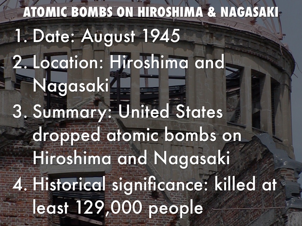 Summary: United States dropped atomic bombs on Hiroshima and Nagasaki