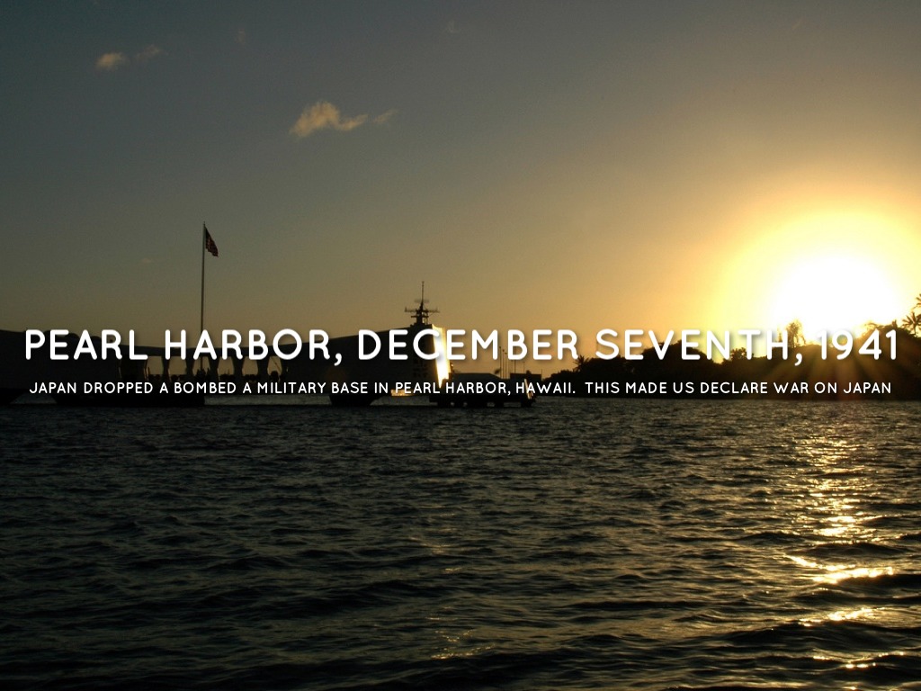 JAPAN DROPPED A BOMBED A MILITARY BASE IN PEARL HARBOR, HAWAII. THIS MADE US DECLARE WAR ON JAPAN