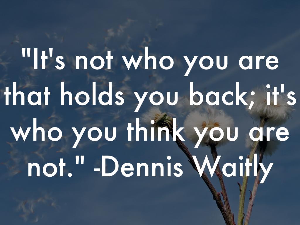 "It's not who you are that holds you back; it's who you think you are not." -Dennis Waitly