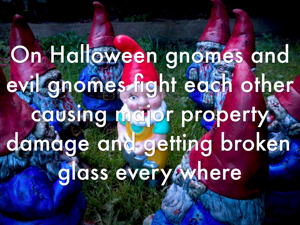 On Halloween gnomes and evil gnomes fight each other causing major property damage and getting broken glass every where
