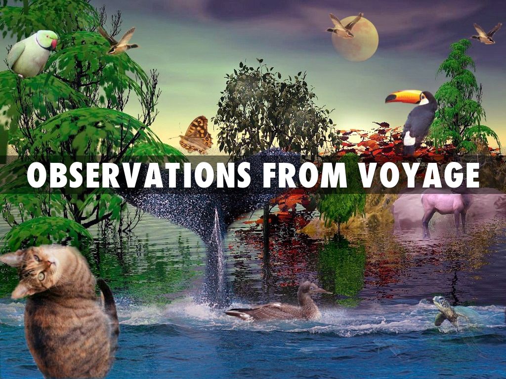 Darwin came across a lot of diverse creatures. He wrote down in his notebook the chararistics of these animals and their different habitats. He saw that species are vary globally and locally. Also that species vary overtime