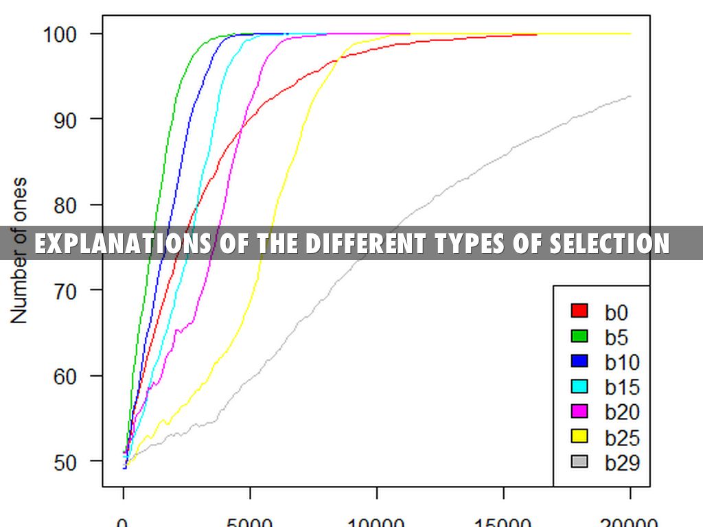 Directional is when individuals at one end of the curve have a higher fitness than individuals in the middle or at the end. stabilizing is when individuals near the center of the curve have higher fitness than an individual at either end. disruptive is when individuals at the outer ends have higher fitness then individuals near the middle of the curve