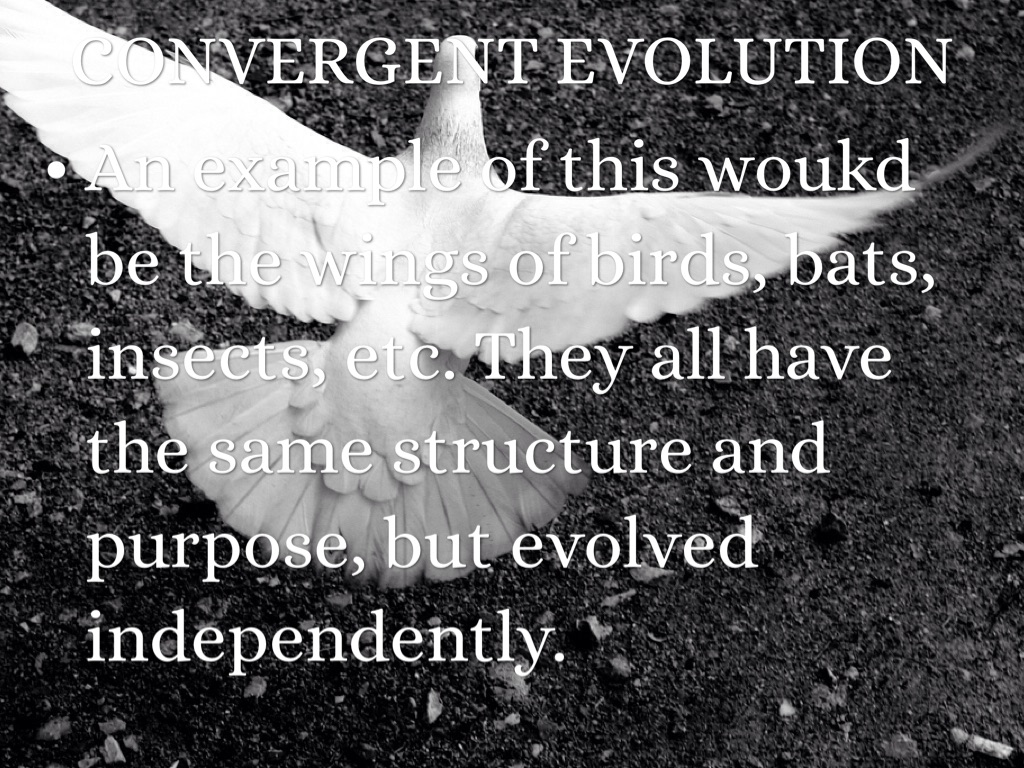An example would be the common ancestor of the human, bat, whale, etc. we diverged from them into new species but still have homologous bone structures, causing this to be classified as divergent evolution.