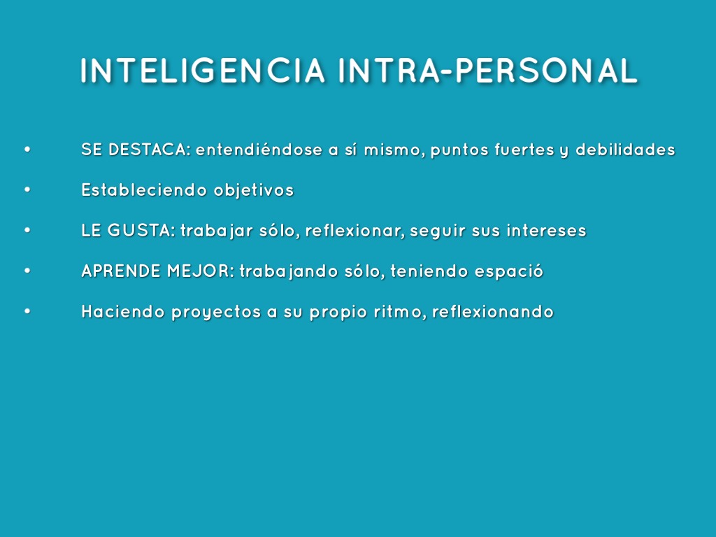 • LE GUSTA: trabajar sólo, reflexionar, seguir sus intereses