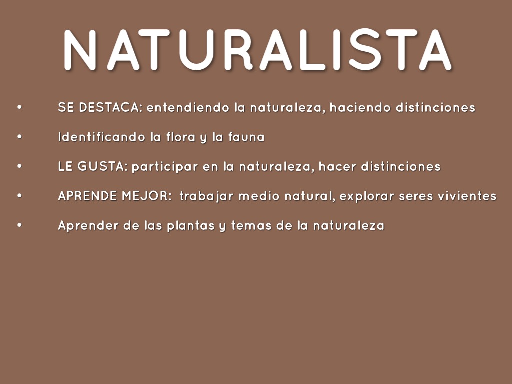 • LE GUSTA: participar en la naturaleza, hacer distinciones