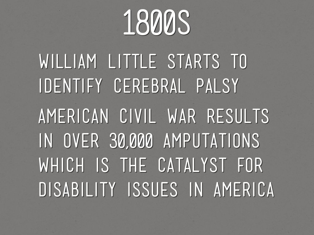 American Civil War results in over 30,000 amputations which is the catalyst for disability issues in America