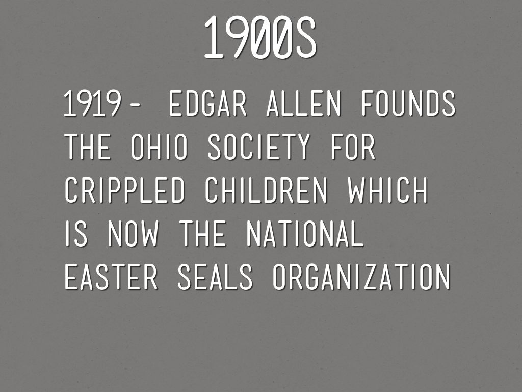 1919- Edgar Allen founds the Ohio Society for Crippled Children which is now the national Easter Seals organization