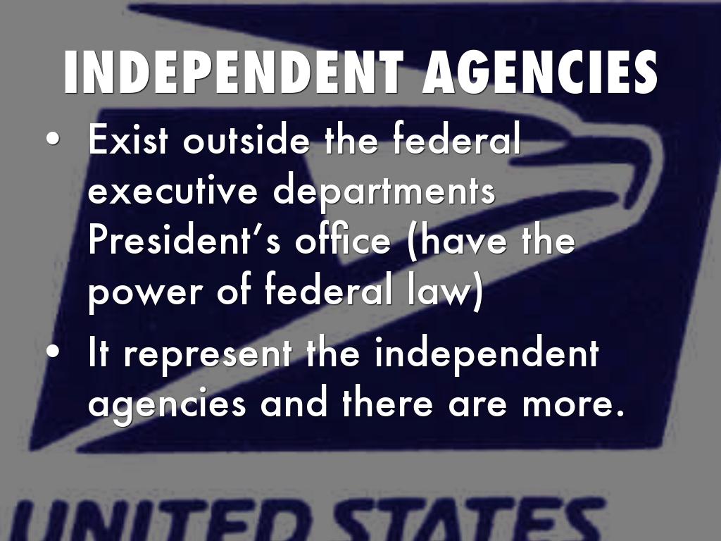Exist outside the federal executive departments President’s office (have the power of federal law)