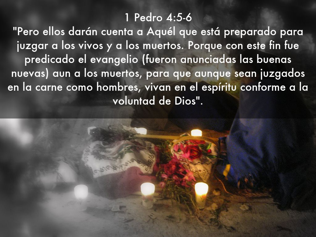 1 Pedro 4:5-6 "Pero ellos darán cuenta a Aquél que está preparado para juzgar a los vivos y a los muertos. Porque con este fin fue predicado el evangelio (fueron anunciadas las buenas nuevas) aun a los muertos, para que aunque sean juzgados en la carne como hombres, vivan en el espíritu conforme a la voluntad de Dios".