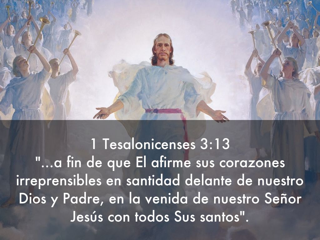1 Tesalonicenses 3:13 "...a fin de que El afirme sus corazones irreprensibles en santidad delante de nuestro Dios y Padre, en la venida de nuestro Señor Jesús con todos Sus santos".